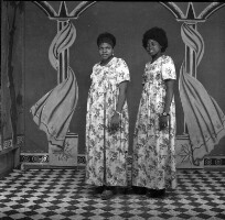 68. EAP054/1/153/119 Reference (shelfmark): EAP054/1/153/119 Title: Recreational photograph [c 1976] Scope & Content: 2 women standing in matching outfits Format of original: 58mm x 59mm plastic negative Collection Area: Endangered Archives Programme Languages: Not applicable Date Range: c 1976 Extent: 1 TIFF image