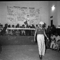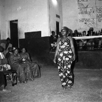 86. EAP054/1/153/189 Reference (shelfmark): EAP054/1/153/189 Title: Recreational photograph [c 1976] Scope & Content: Woman standing at the meal following a meeting? Possibly dancing? Format of original: 57mm x 59mm plastic negative Collection Area: Endangered Archives Programme Languages: Not applicable Date Range: c 1976 Extent: 1 TIFF image