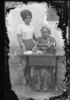 1. EAP054/1/83/5 Reference (shelfmark): EAP054/1/83/5 Title: Recreational photograph [c 1976] Scope & Content: Woman standing by woman sitting at treadle sewing machine Format of original: 137mm x 95mm plastic negative Collection Area: Endangered Archives Programme Languages: Not applicable Date Range: c 1976 Extent: 1 TIFF image
