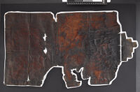 Lower left fragment (D): Fragment of a parchment leaf, only bearing a few letters on either side.