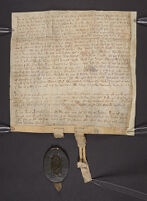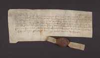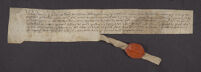 - Release by Elizabeth, prioress of Hampole Priory [Yorkshire], of 30s from Lady Alice Broun, guardian of the lands and heir of John Fitzwilliam, once of Atwick [Yorkshire], from rents in Alnwick [Northumberland]; given the feast of St John the Evangelist [27 December] 1505. Affixed with an imper...