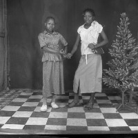 425. EAP054/1/163/425 Reference (shelfmark): EAP054/1/163/425 Title: Recreational photograph [c 1983] Scope & Content: 2 young women standing by plastic tree Format of original: 59mm x 59mm plastic negative Collection Area: Endangered Archives Programme Languages: Not applicable Date Range: c 1983 Extent: 1 TIFF image