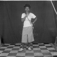 153. EAP054/1/164/153 Reference (shelfmark): EAP054/1/164/153 Title: Recreational photograph [c 1982] Scope & Content: Young woman standing, left hand on hip, hand to chin Format of original: 59mm x 59mm plastic negative Collection Area: Endangered Archives Programme Languages: Not applicable Date Range: c 1982 Extent: 1 TIFF image
