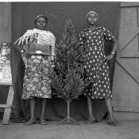 136. EAP054/1/30/136 Reference (shelfmark): EAP054/1/30/136 Title: Recreational photograph [c 1981] Scope & Content: 2 women standing either side of tree Format of original: 59mm x 59mm plastic negative Collection Area: Endangered Archives Programme Languages: Not applicable Date Range: c 1981 Extent: 1 TIFF image