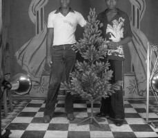 138. EAP054/1/30/138 Reference (shelfmark): EAP054/1/30/138 Title: Recreational photograph [c 1981] Scope & Content: 2 men standing by tree; heads truncated Format of original: 52mm x 59mm plastic negative Collection Area: Endangered Archives Programme Languages: Not applicable Date Range: c 1981 Extent: 1 TIFF image
