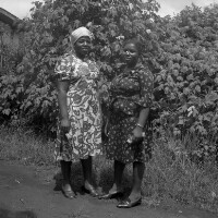146. EAP054/1/30/146 Reference (shelfmark): EAP054/1/30/146 Title: Recreational photograph [c 1981] Scope & Content: 2 women standing by bushes Format of original: 59mm x 59mm plastic negative Collection Area: Endangered Archives Programme Languages: Not applicable Date Range: c 1981 Extent: 1 TIFF image
