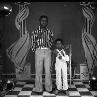 147. EAP054/1/30/147 Reference (shelfmark): EAP054/1/30/147 Title: Recreational photograph [c 1981] Scope & Content: Man standing by male child Format of original: 59mm x 59mm plastic negative Collection Area: Endangered Archives Programme Languages: Not applicable Date Range: c 1981 Extent: 1 TIFF image