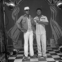 157. EAP054/1/30/157 Reference (shelfmark): EAP054/1/30/157 Title: Recreational photograph [c 1981] Scope & Content: 2 men standing Format of original: 59mm x 59mm plastic negative Collection Area: Endangered Archives Programme Languages: Not applicable Date Range: c 1981 Extent: 1 TIFF image