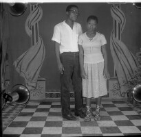 194. EAP054/1/30/194 Reference (shelfmark): EAP054/1/30/194 Title: Recreational photograph [c 1981] Scope & Content: Couple standing Format of original: 59mm x 59mm plastic negative Collection Area: Endangered Archives Programme Languages: Not applicable Date Range: c 1981 Extent: 1 TIFF image