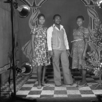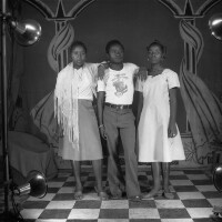 582. EAP054/1/30/582 Reference (shelfmark): EAP054/1/30/582 Title: Recreational photograph [c 1981] Scope & Content: Man standing between 2 women standing Format of original: 59mm x 59mm plastic negative Collection Area: Endangered Archives Programme Languages: Not applicable Date Range: c 1981 Extent: 1 TIFF image
