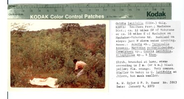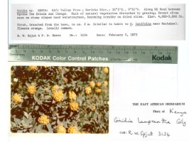 709. EAP923/1/1/1/706 Reference (shelfmark): EAP923/1/1/1/706 Title: Gnidia latifolia; in SW of Machakos, Kenya Scope & Content: Genus: Gnidia, Taxonomic classification: Thymelaeaceae. Author(s)/Creator(s): R.W.Spjut & P.D. Ensor. Scribe(s): Jane Chilande. Collection Area: Endangered Archives Programme Languages: Not applicable Date Range: Apr 1973 Extent: 1 tiff image, 44.3 MB