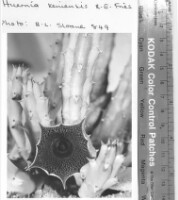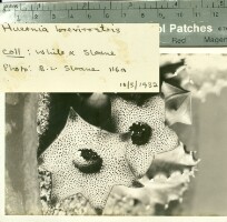 738. EAP923/1/1/1/735 Reference (shelfmark): EAP923/1/1/1/735 Title: Huernia insigniflora; in Pretoria. Scope & Content: Genus: Huernia, Taxonomic classification: Apocynaceae. Author(s)/Creator(s): Vander Merwe. Scribe(s): Jane Chilande. Collection Area: Endangered Archives Programme Languages: Not applicable Date Range: Dec 1937 Extent: 1 tiff image, 2.7 MB