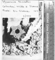 744. EAP923/1/1/1/741 Reference (shelfmark): EAP923/1/1/1/741 Title: Huernia oculata; in Cape province South Africa Scope & Content: Genus: Huernia, Taxonomic classification: Apocynaceae. Author(s)/Creator(s): B.L. Sloane. Scribe(s): Jane Chilande. Collection Area: Endangered Archives Programme Languages: Not applicable Date Range: 8 Mar 1933 Extent: 1 tiff image, 2.2 MB