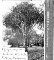 896. EAP923/1/1/1/893 Reference (shelfmark): EAP923/1/1/1/893 Title: Pandanus kirkii; in Kwale,Jadini Kenya Scope & Content: Genus: Pandanus, Taxonomic classification: Pandanaceae. Author(s)/Creator(s): P.J.Greenway. Scribe(s): Jane Chilande. Collection Area: Endangered Archives Programme Languages: Not applicable Date Range: 12 Aug 1959 Extent: 1 tiff image, 11.5 MB