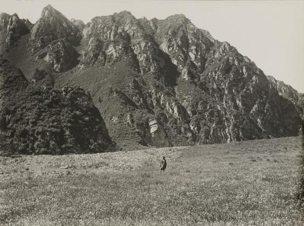 - Genre: Landscape Photography Left-hand section of three-part panoramic view, continued in prints 557 and 563, looking towards the fort. PUBLISHED: 'Innermost Asia', vol. 1, fig. 278: 'Fort of O-po, Nan-shan, seen from west.' (I.A. Map 46, C5). Subjects = archaeological expeditions; archaeol...