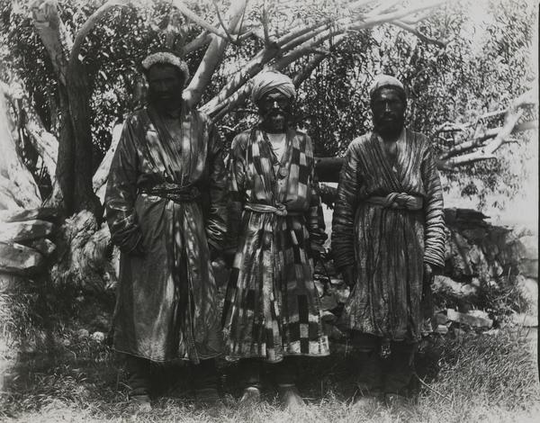 Kokan-Beg, Ming-bashi of Kara-kul, with his son, at Kara-chim. Photographer: Stein, Marc Aurel