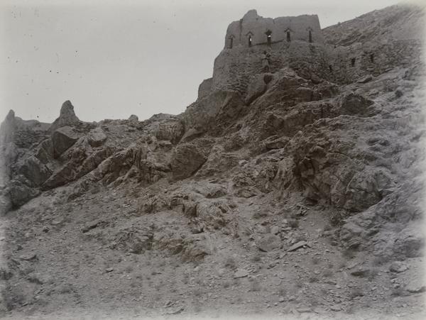 Genre: Architectural Photography General view of Zulkhomar Fort. Similar to published version in 'Innermost Asia', vol. 2, fig. 409: 'Fort of Zulkhomar, Zamr-i-atish-parast, seen from south.' (See Photo 392/29 (414) for the published version). Described in detail, ii, 866-67. Subjects = arch...