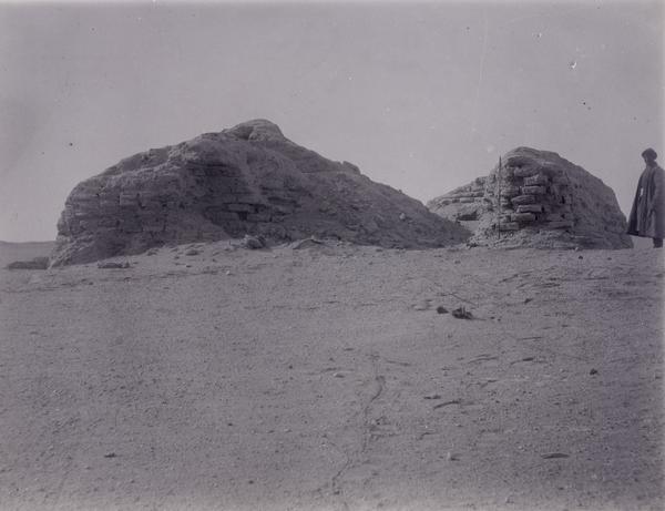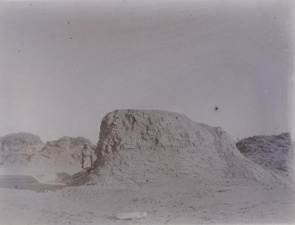 Genre: Architectural Photography Close view of remains. PUBLISHED: 'Innermost Asia', vol. 1, fig. 107: 'Remains of shrine or stupa at Bash-koyumal, seen from north-west.' (Location: 'Innermost Asia,' Map 30, A3). Location = Bash-koyumal; China; Xinjiang