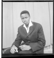 2724. EAP449/2/5/723 Reference (shelfmark): EAP449/2/5/723 Title: A young man sitting in the studio wearing a black suit Collection Area: Endangered Archives Programme Languages: Not applicable Date Range: 2nd half od the 20th century Extent: 1 TIFF image
