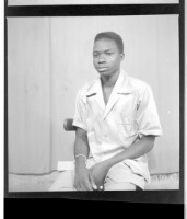 2726. EAP449/2/5/725 Reference (shelfmark): EAP449/2/5/725 Title: A young man sitting in the studio wearing a khaki shirt Collection Area: Endangered Archives Programme Languages: Not applicable Date Range: 2nd half od the 20th century Extent: 1 TIFF image