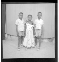 2775. EAP449/2/5/774 Reference (shelfmark): EAP449/2/5/774 Title: Three children standing in the studio; a little girl in a white dress standing between two boys in white shirts and shorts Collection Area: Endangered Archives Programme Languages: Not applicable Date Range: 2nd half od the 20th century Extent: 1 TIFF image