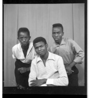 2777. EAP449/2/5/776 Reference (shelfmark): EAP449/2/5/776 Title: Three young men in the studio wearing white shirts Collection Area: Endangered Archives Programme Languages: Not applicable Date Range: 2nd half od the 20th century Extent: 1 TIFF image