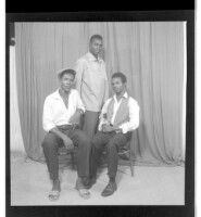 2779. EAP449/2/5/778 Reference (shelfmark): EAP449/2/5/778 Title: Three young men in the studio; two sitting on chairs in front, one standing in back Collection Area: Endangered Archives Programme Languages: Not applicable Date Range: 2nd half od the 20th century Extent: 1 TIFF image