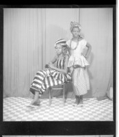 2803. EAP449/2/5/802 Reference (shelfmark): EAP449/2/5/802 Title: Two women in the studio; one sitting on a chair with her legs crossed, the other standing with one hand on her hip Collection Area: Endangered Archives Programme Languages: Not applicable Date Range: 2nd half od the 20th century Extent: 1 TIFF image