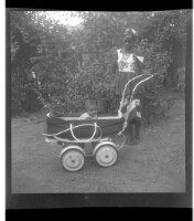 2859. EAP449/2/5/858 Reference (shelfmark): EAP449/2/5/858 Title: A baby sitting in a carriage and a young woman standing next to it Collection Area: Endangered Archives Programme Languages: Not applicable Date Range: 2nd half od the 20th century Extent: 1 TIFF image