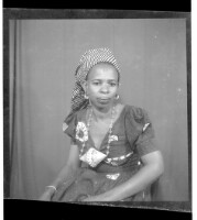 2878. EAP449/2/5/877 Reference (shelfmark): EAP449/2/5/877 Title: A woman sitting in the studio wearing a white dress and jewellery Collection Area: Endangered Archives Programme Languages: Not applicable Date Range: 2nd half od the 20th century Extent: 1 TIFF image