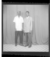 2885. EAP449/2/5/884 Reference (shelfmark): EAP449/2/5/884 Title: Two men standing in the studio; one wearing a suit, the other wearing a white shirt and black pants Collection Area: Endangered Archives Programme Languages: Not applicable Date Range: 2nd half od the 20th century Extent: 1 TIFF image