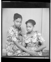 2887. EAP449/2/5/886 Reference (shelfmark): EAP449/2/5/886 Title: Two girls sitting in the studio wearing dresses, necklaces, and earrings Collection Area: Endangered Archives Programme Languages: Not applicable Date Range: 2nd half od the 20th century Extent: 1 TIFF image