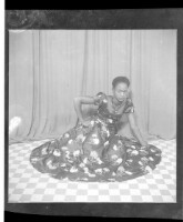 2894. EAP449/2/5/893 Reference (shelfmark): EAP449/2/5/893 Title: A woman sitting on the studio floor wearing a black and white dress Collection Area: Endangered Archives Programme Languages: Not applicable Date Range: 2nd half od the 20th century Extent: 1 TIFF image