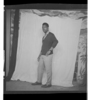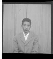 2907. EAP449/2/5/906 Reference (shelfmark): EAP449/2/5/906 Title: A man standing in the studio wearing a black shirt and a watch Collection Area: Endangered Archives Programme Languages: Not applicable Date Range: 2nd half od the 20th century Extent: 1 TIFF image