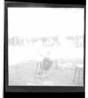 2949. EAP449/2/5/948 Reference (shelfmark): EAP449/2/5/948 Title: A man sitting on a stool in the road wearing a white shirt Collection Area: Endangered Archives Programme Languages: Not applicable Date Range: 2nd half od the 20th century Extent: 1 TIFF image