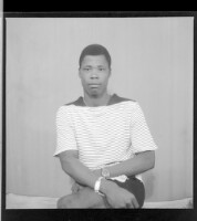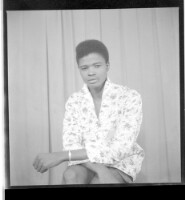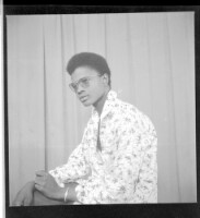 2992. EAP449/2/5/991 Reference (shelfmark): EAP449/2/5/991 Title: A young man sitting in profile in the studio wearing a printed shirt, a bracelet, and shorts (same man from Image 03811) Collection Area: Endangered Archives Programme Languages: Not applicable Date Range: 2nd half od the 20th century Extent: 1 TIFF image