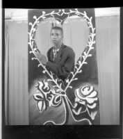 2997. EAP449/2/5/996 Reference (shelfmark): EAP449/2/5/996 Title: A young man standing behind a heart-shaped frame in the studio wearing a watch Collection Area: Endangered Archives Programme Languages: Not applicable Date Range: 2nd half od the 20th century Extent: 1 TIFF image