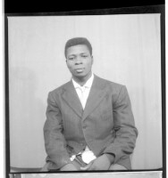 3031. EAP449/2/5/1030 Reference (shelfmark): EAP449/2/5/1030 Title: A man sitting in the studio wearing a black suit jacket Collection Area: Endangered Archives Programme Languages: Not applicable Date Range: 2nd half od the 20th century Extent: 1 TIFF image
