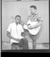 3040. EAP449/2/5/1039 Reference (shelfmark): EAP449/2/5/1039 Title: Two men in the studio, one sitting, the other standing with a guitar Collection Area: Endangered Archives Programme Languages: Not applicable Date Range: 2nd half od the 20th century Extent: 1 TIFF image