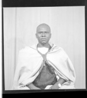 3053. EAP449/2/5/1052 Reference (shelfmark): EAP449/2/5/1052 Title: A man sitting in the studio wearing a black and white boubou after returning from Mecca Collection Area: Endangered Archives Programme Languages: Not applicable Date Range: 2nd half od the 20th century Extent: 1 TIFF image