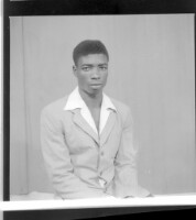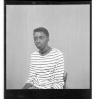 3141. EAP449/2/5/1140 Reference (shelfmark): EAP449/2/5/1140 Title: A young man sitting in the studio wearing a black and white t-shirt Collection Area: Endangered Archives Programme Languages: Not applicable Date Range: 2nd half od the 20th century Extent: 1 TIFF image