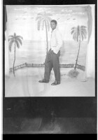 3142. EAP449/2/5/1141 Reference (shelfmark): EAP449/2/5/1141 Title: A man standing in the studio wearing a striped shirt and black pants Collection Area: Endangered Archives Programme Languages: Not applicable Date Range: 2nd half od the 20th century Extent: 1 TIFF image