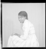 3145. EAP449/2/5/1144 Reference (shelfmark): EAP449/2/5/1144 Title: A young woman sitting in the studio wearing earrings and a watch Collection Area: Endangered Archives Programme Languages: Not applicable Date Range: 2nd half od the 20th century Extent: 1 TIFF image