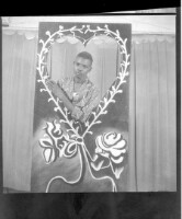 3175. EAP449/2/5/1174 Reference (shelfmark): EAP449/2/5/1174 Title: A man wearing a grey shirt standing behind a frame in the shape of a heart in the studio. Collection Area: Endangered Archives Programme Languages: Not applicable Date Range: 2nd half od the 20th century Extent: 1 TIFF image