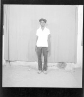 3195. EAP449/2/5/1194 Reference (shelfmark): EAP449/2/5/1194 Title: A young man standing in the studio wearing a white shirt, black hats, and a hat Collection Area: Endangered Archives Programme Languages: Not applicable Date Range: 2nd half od the 20th century Extent: 1 TIFF image