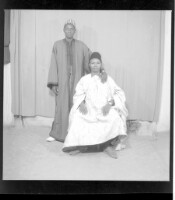 3196. EAP449/2/5/1195 Reference (shelfmark): EAP449/2/5/1195 Title: Two men in the studio wearing boubous and fez; one standing, one sitting Collection Area: Endangered Archives Programme Languages: Not applicable Date Range: 2nd half od the 20th century Extent: 1 TIFF image