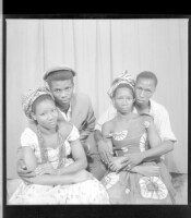 3200. EAP449/2/5/1199 Reference (shelfmark): EAP449/2/5/1199 Title: Five people in the studio; a woman wearing a white boubou sitting in front with two little boys in boubous standing next to her and two men standing (same group form Image 04019) Collection Area: Endangered Archives Programme Languages: Not applicable Date Range: 2nd half od the 20th century Extent: 1 TIFF image