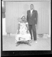 3304. EAP449/2/5/1303 Reference (shelfmark): EAP449/2/5/1303 Title: A couple in the studio; the woman sitting in a chair and wearing a dress, the man wearing a suit Collection Area: Endangered Archives Programme Languages: Not applicable Date Range: 2nd half od the 20th century Extent: 1 TIFF image