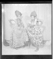 3305. EAP449/2/5/1304 Reference (shelfmark): EAP449/2/5/1304 Title: Two young women standing in the studio with one foot each on a chair and wearing dresses Collection Area: Endangered Archives Programme Languages: Not applicable Date Range: 2nd half od the 20th century Extent: 1 TIFF image