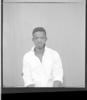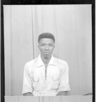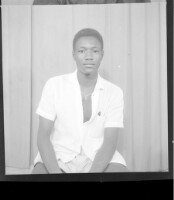3388. EAP449/2/5/1387 Reference (shelfmark): EAP449/2/5/1387 Title: A young man sitting in the studio wearing a white shirt with a pen in the front pocket Collection Area: Endangered Archives Programme Languages: Not applicable Date Range: 2nd half od the 20th century Extent: 1 TIFF image